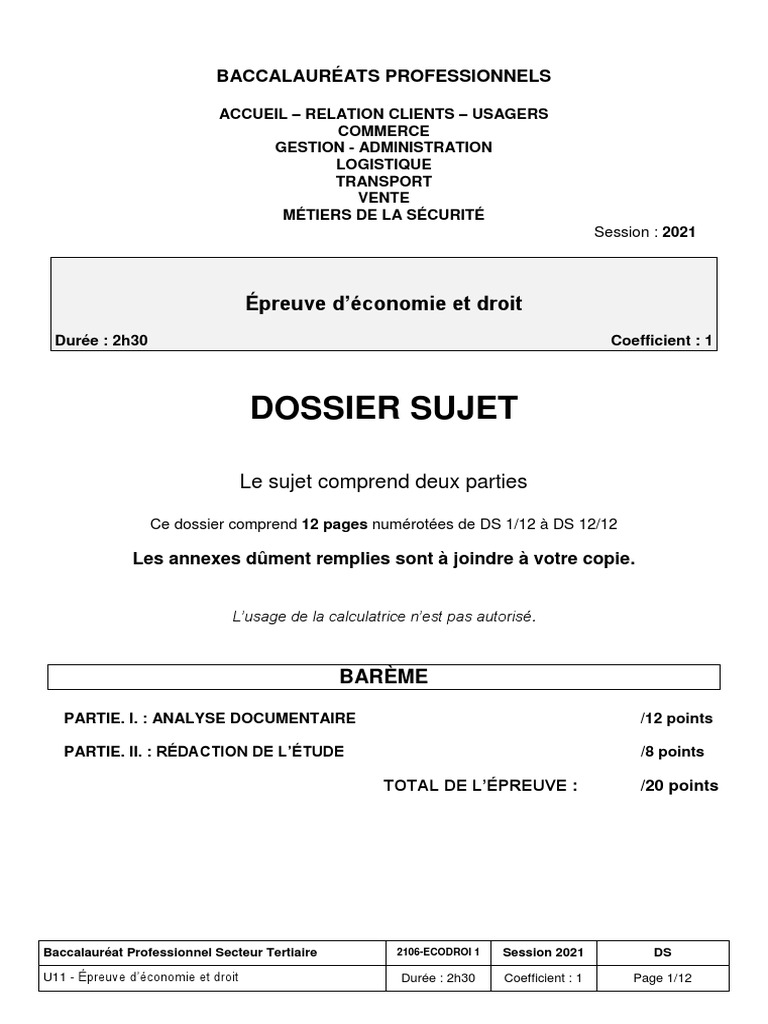 Dossier D Economie Et Gestion Bac Pro